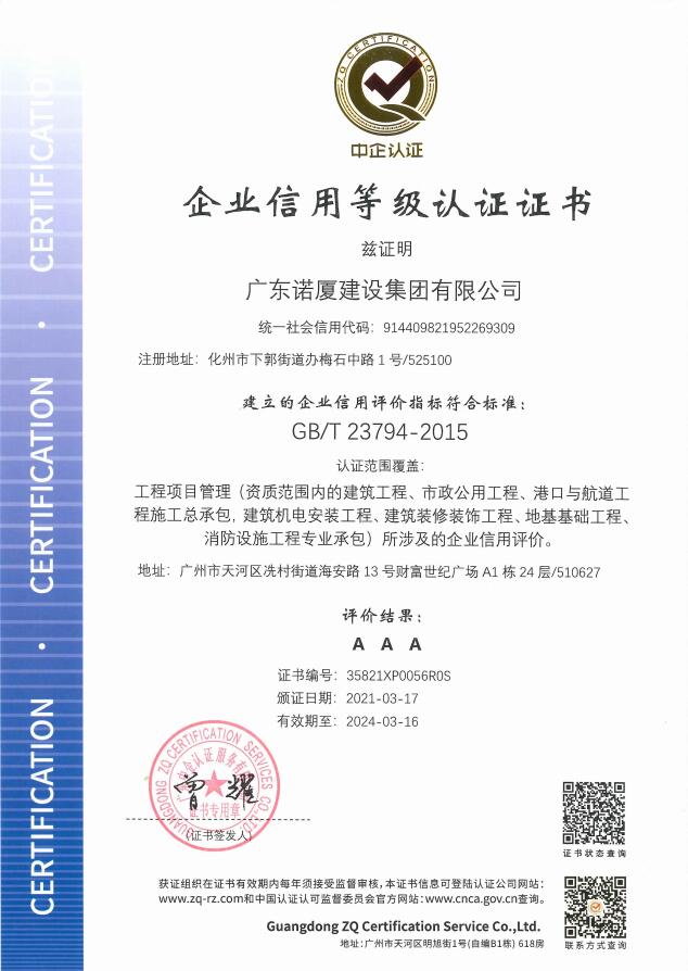 廣東諾廈建設(shè)集團(tuán)有限公司是諾廈集團(tuán)的核心企業(yè),具備國(guó)家房屋建筑工程施工總承包壹級(jí)、市政工程施工總承包壹級(jí)、港口與航道工程總承包、建筑裝修裝飾工程、消防設(shè)施工程、地基基礎(chǔ)工程、機(jī)電設(shè)備安裝工程、體育場(chǎng)地設(shè)施工程、建筑智能化工程、河湖整治工程、水利水電工程等資質(zhì)。......